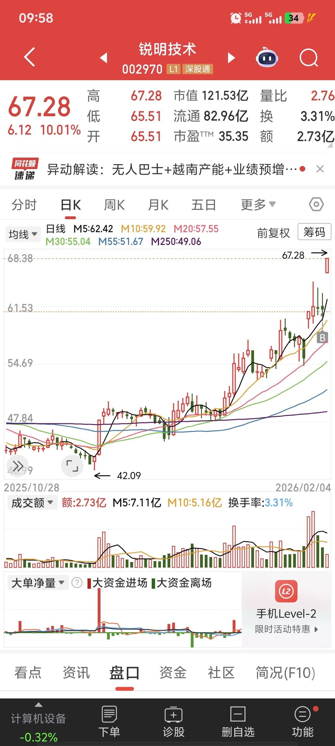 $锐明技术(SZ002970)$ 感觉像捡钱一样,一买就涨停