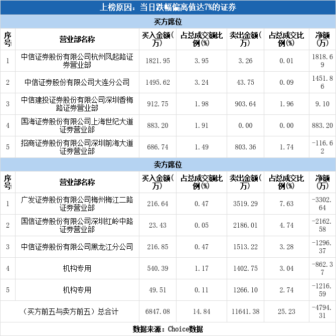 多主力现身龙虎榜,和远气体跌停(11-14)