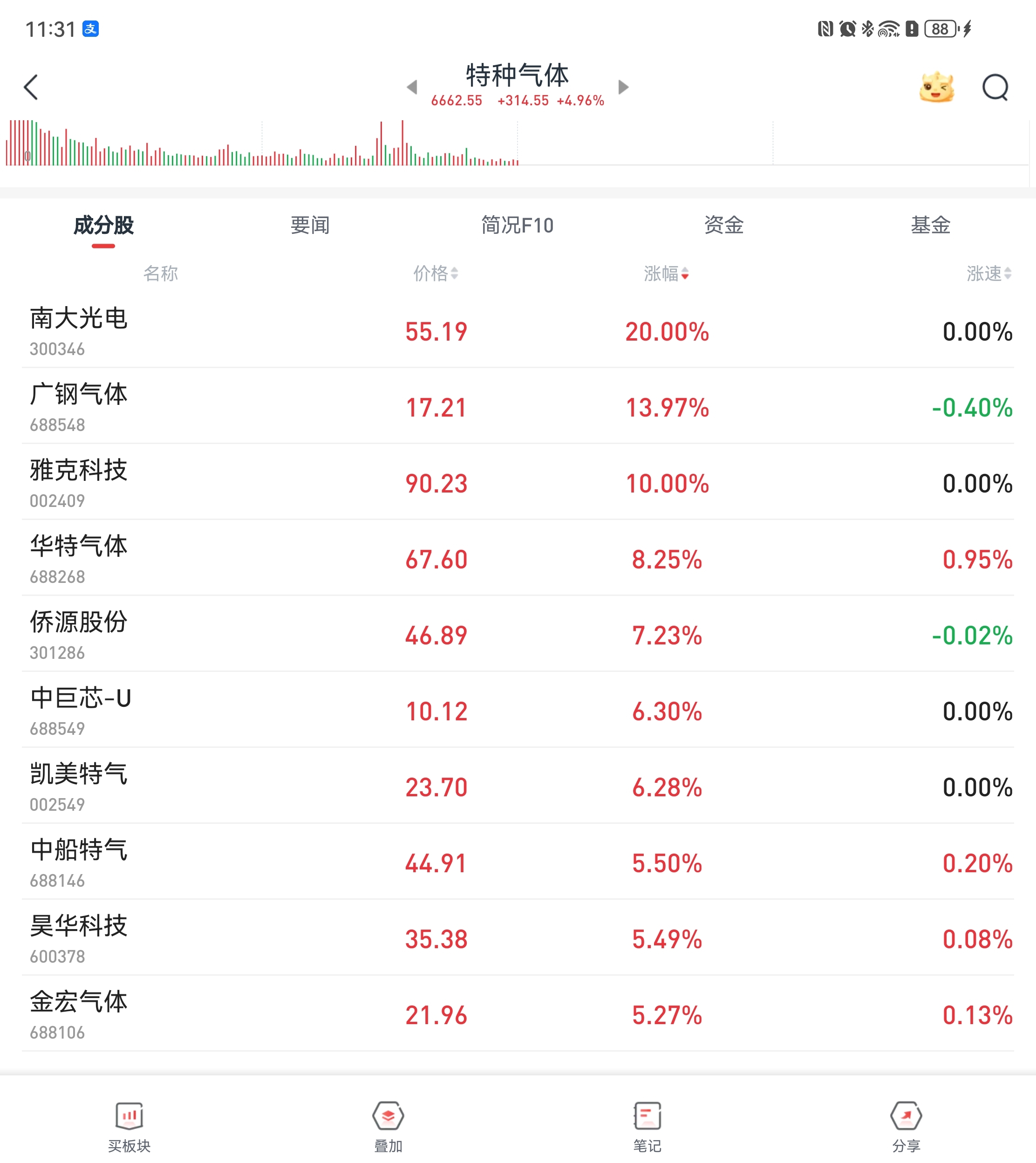 $和远气体(SZ002971)$ 跟踪牛散持仓,钟格重仓的普冉、金海通三天大涨,中曰特殊时期,特种气体有望接力存储芯片随时进入战 dou状态,中午给你们一个半小时的时间去借钱,下午开始飙车。