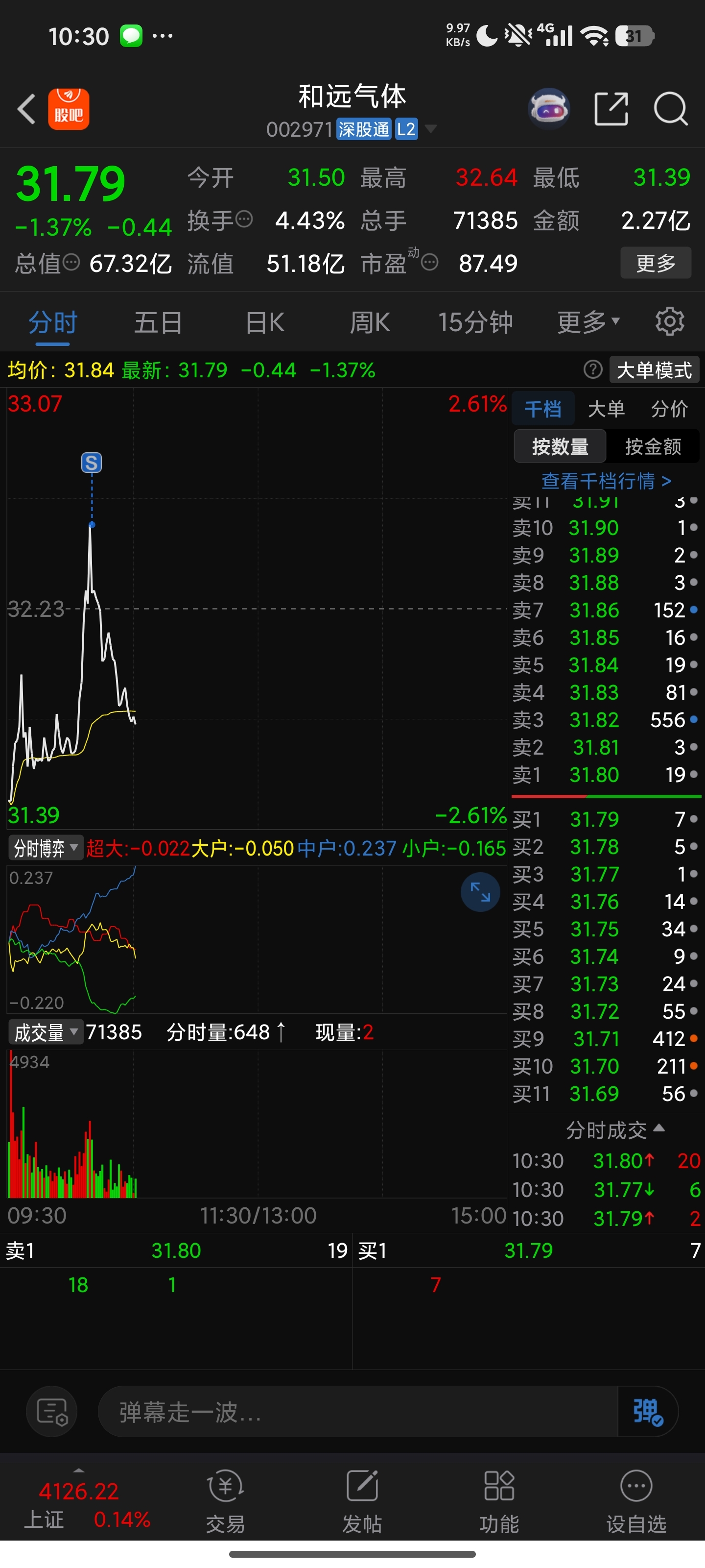 $和远气体(SZ002971)$ 对不住了各位,今天是我砸的盘。