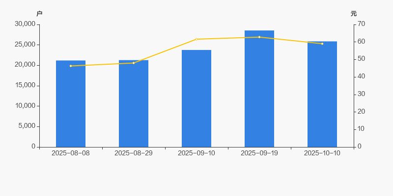 2025年8月8日至今,公司股东户数显著增长,区间涨幅为22.08%。2025年8月8日至2025年10月10日区间股价上涨27.45%。