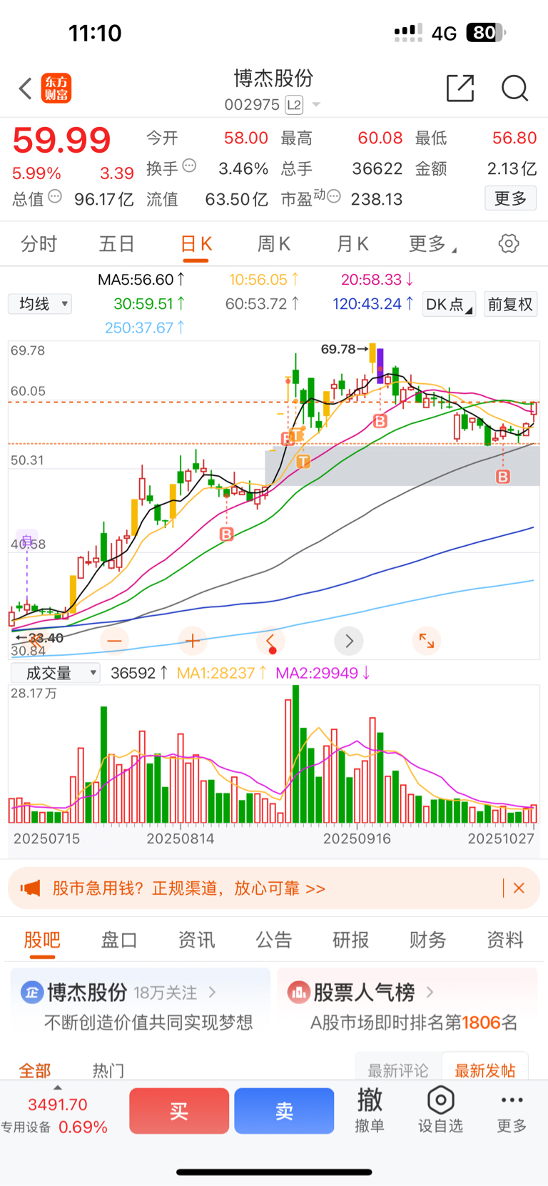 $博杰股份(SZ002975)$ 坚持就是胜利,一度接近翻绿都没卖,终于有了回馈
