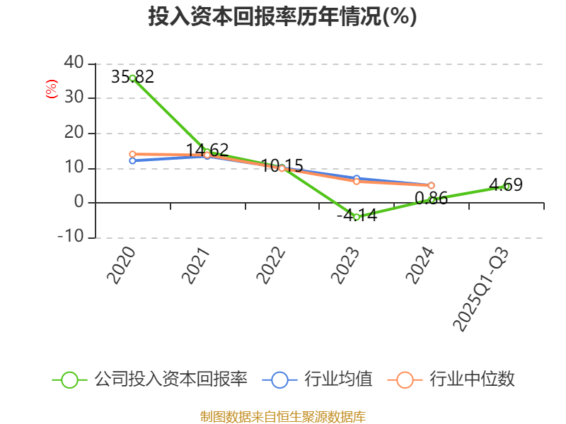 盈利能力方面, 2025年前三季度公司加权平均净资产收益率为5.06%,同比上升4.97个百分点。公司2025年前三季度投入资本回报率为4.69%,较上年同期上升4.85个百分点。