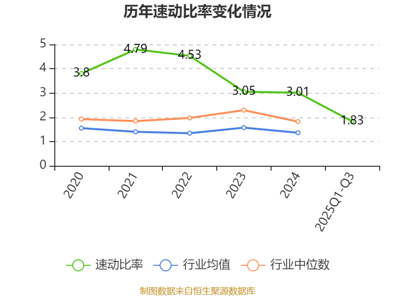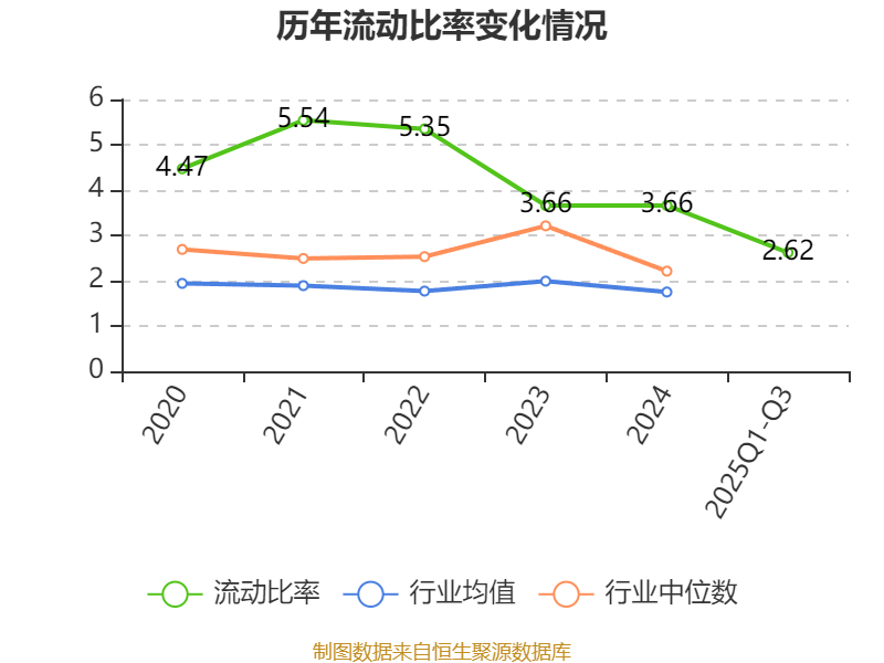2025年前三季度,公司流动比率为2.62,速动比率为1.83。