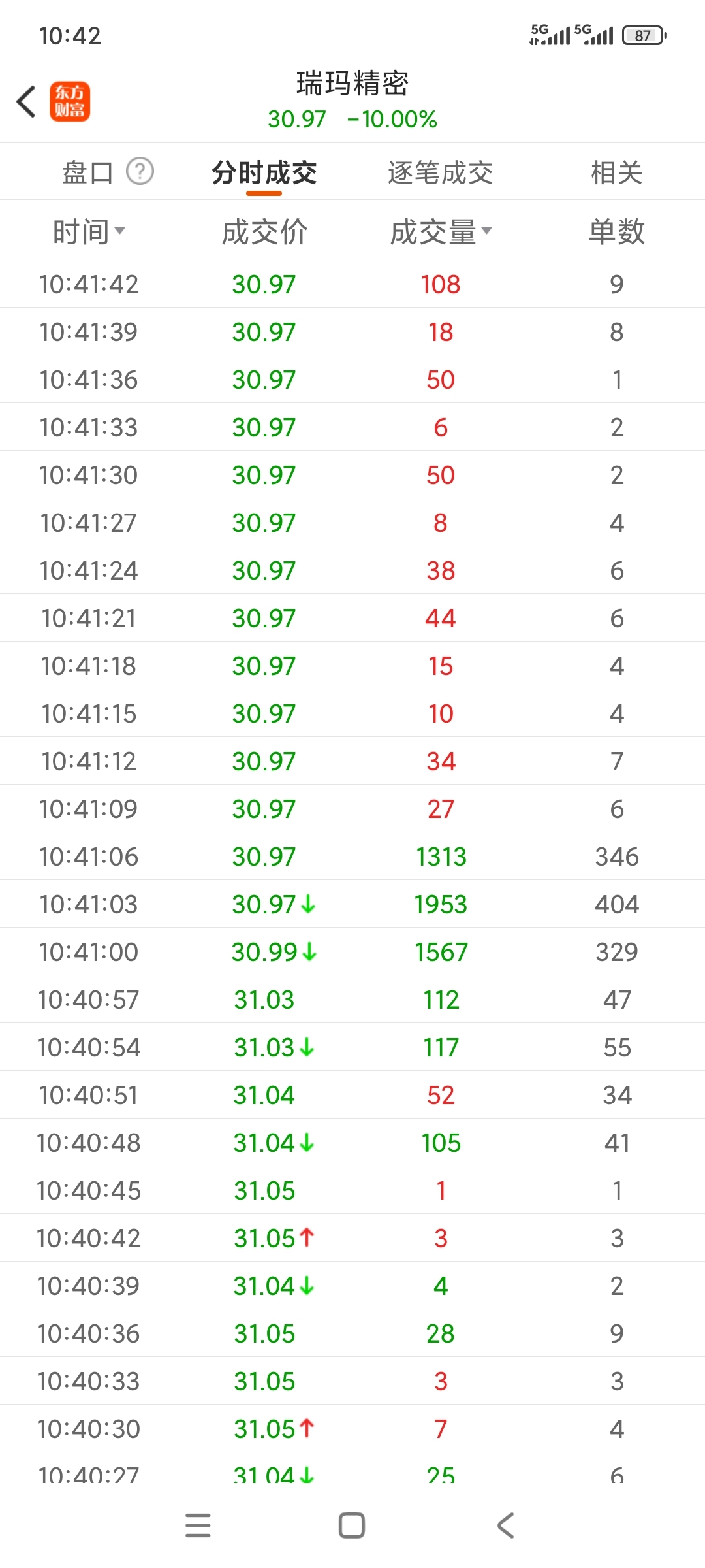 $瑞玛精密(SZ002976)$ 31.03元 1.7w,1.4w护盘资金都撤单了