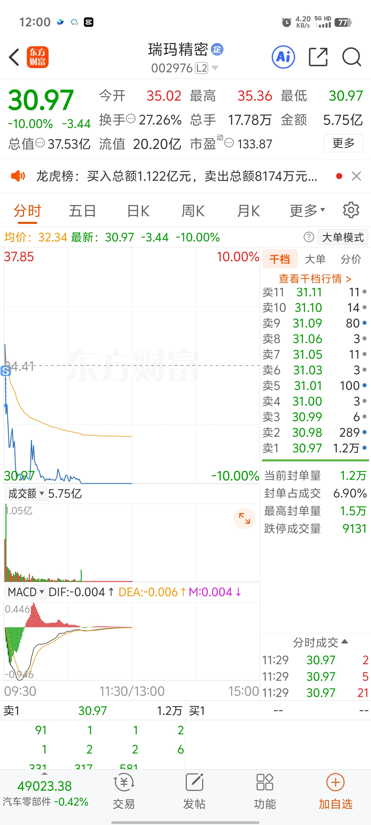 $瑞玛精密(SZ002976)$ 玛德苟主,还想砸我,还好我跑得快