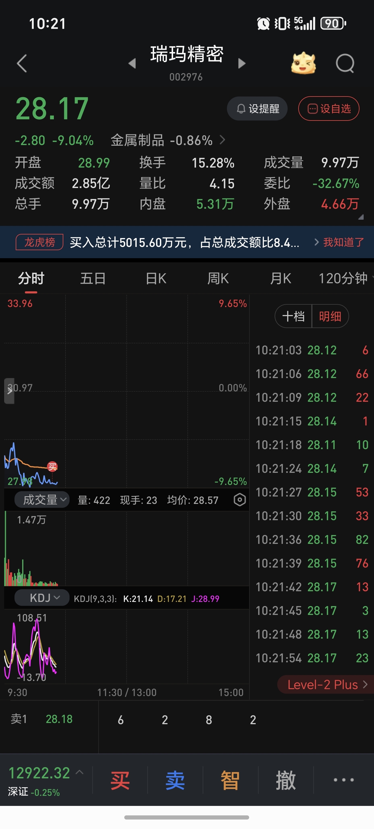 $瑞玛精密(SZ002976)$ 好票,走起,等主力自救