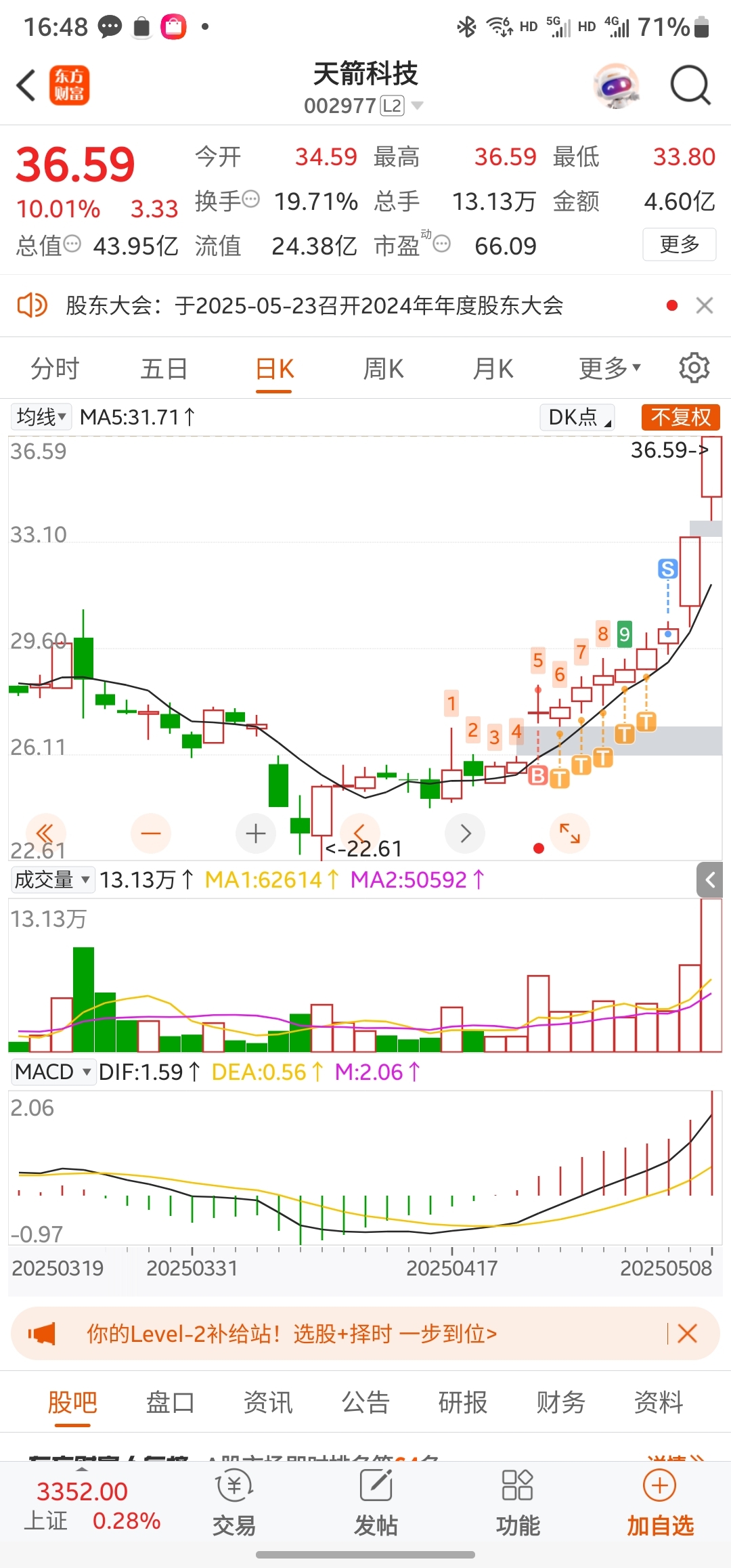 $天箭科技(SZ002977)$ 只能说知足常乐