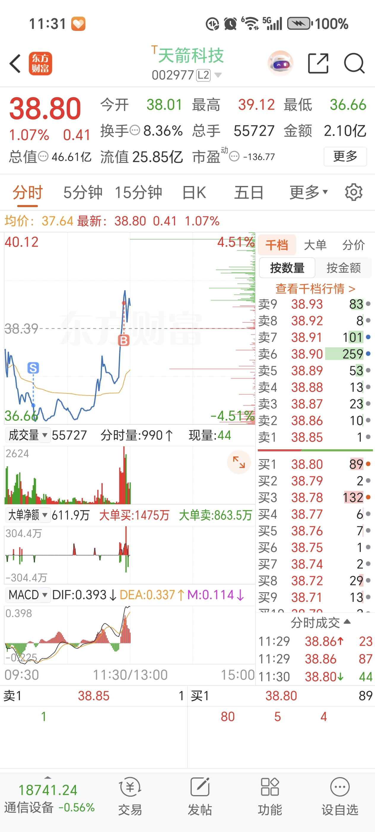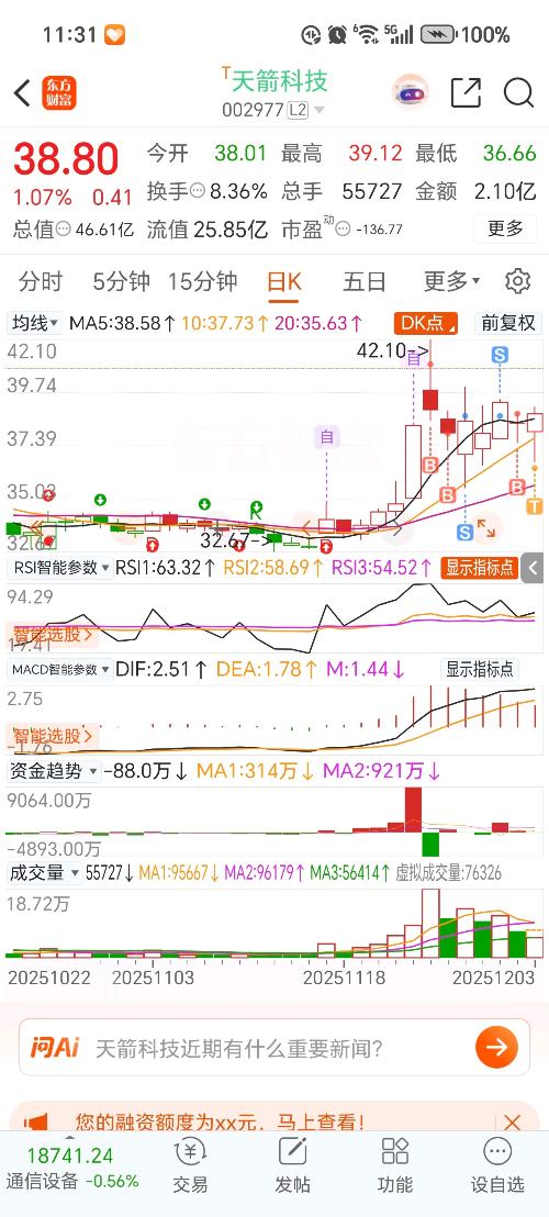 $天箭科技(SZ002977)$   做T失败