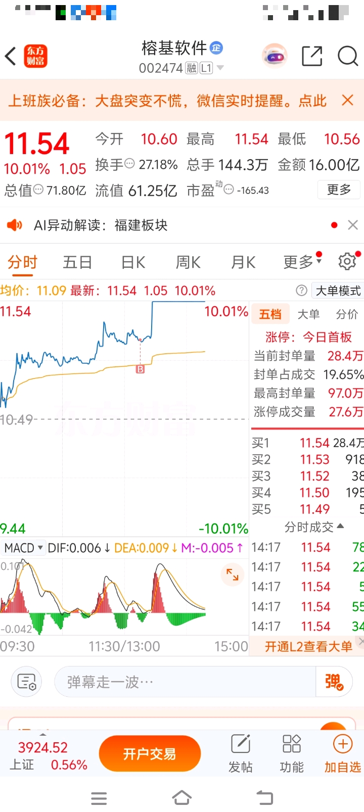 $榕基软件(SZ002474)$ 虾仁下午进场博弈