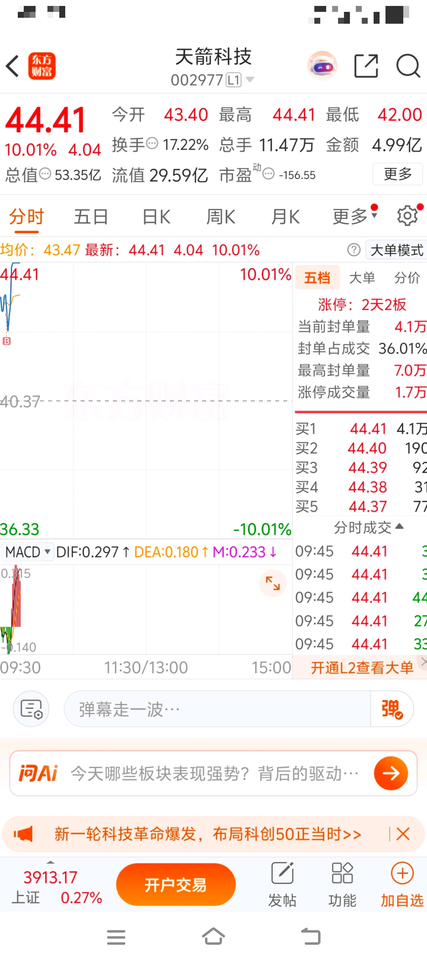 $天箭科技(SZ002977)$ 虾仁早上进场博弈