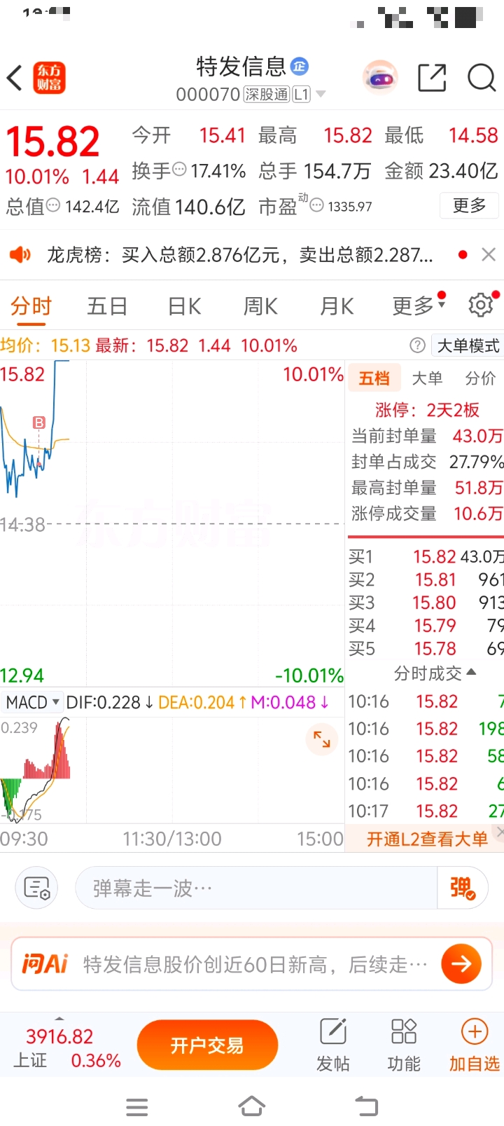 $特发信息(SZ000070)$ 虾仁早上进场博弈