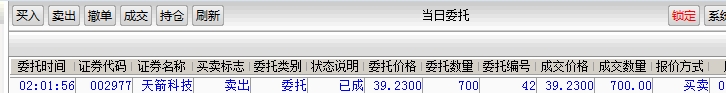 $天箭科技(SZ002977)$ 一觉醒来凌晨二点多。一看消息傻眼了,还好分散买股票损失不大,凌晨二点多立即挂单,上午10点左右终出来了,阿米陀佛!