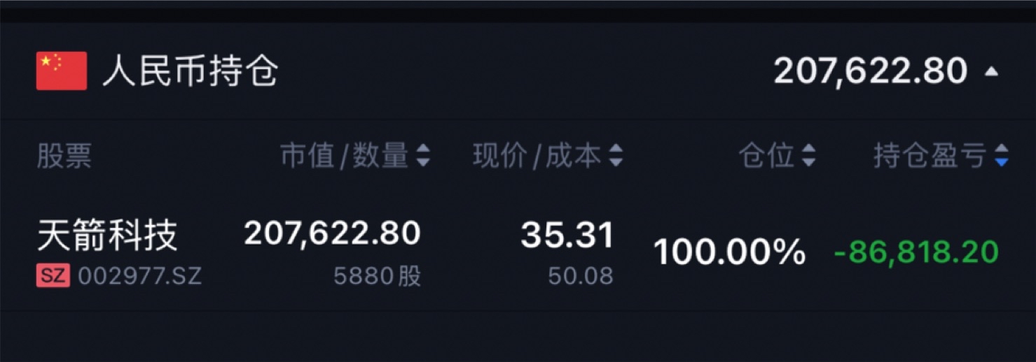 $天箭科技(SZ002977)$ 怎么办