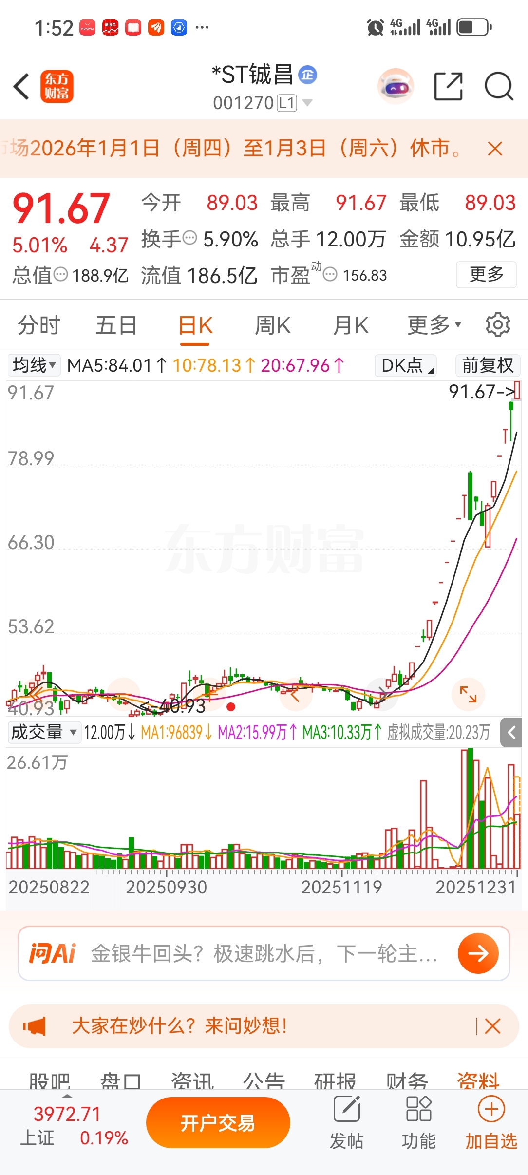 温馨提示: 1.根据《证券法》规定,禁止编造、传播虚假信息或者误导性信息,扰乱证券市场;2.用户在本社区发表的所有资料、言论等仅代表个人观点,与本网站立场无关,不对您构成任何投资建议。用户应基于自己的独立判断,自行决定证券投资并承担相应风险。《东方财富社区管理规定》
