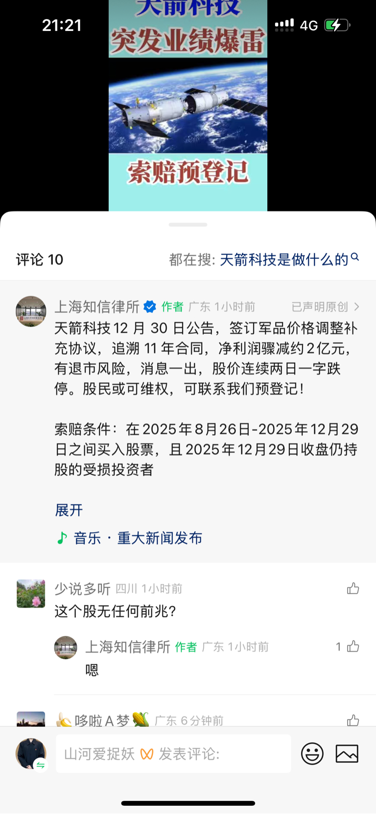 $天箭科技(SZ002977)$