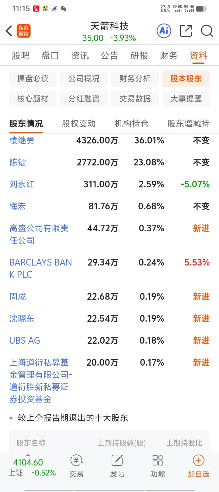 $天箭科技(SZ002977)$ 十大股东被套了6个
