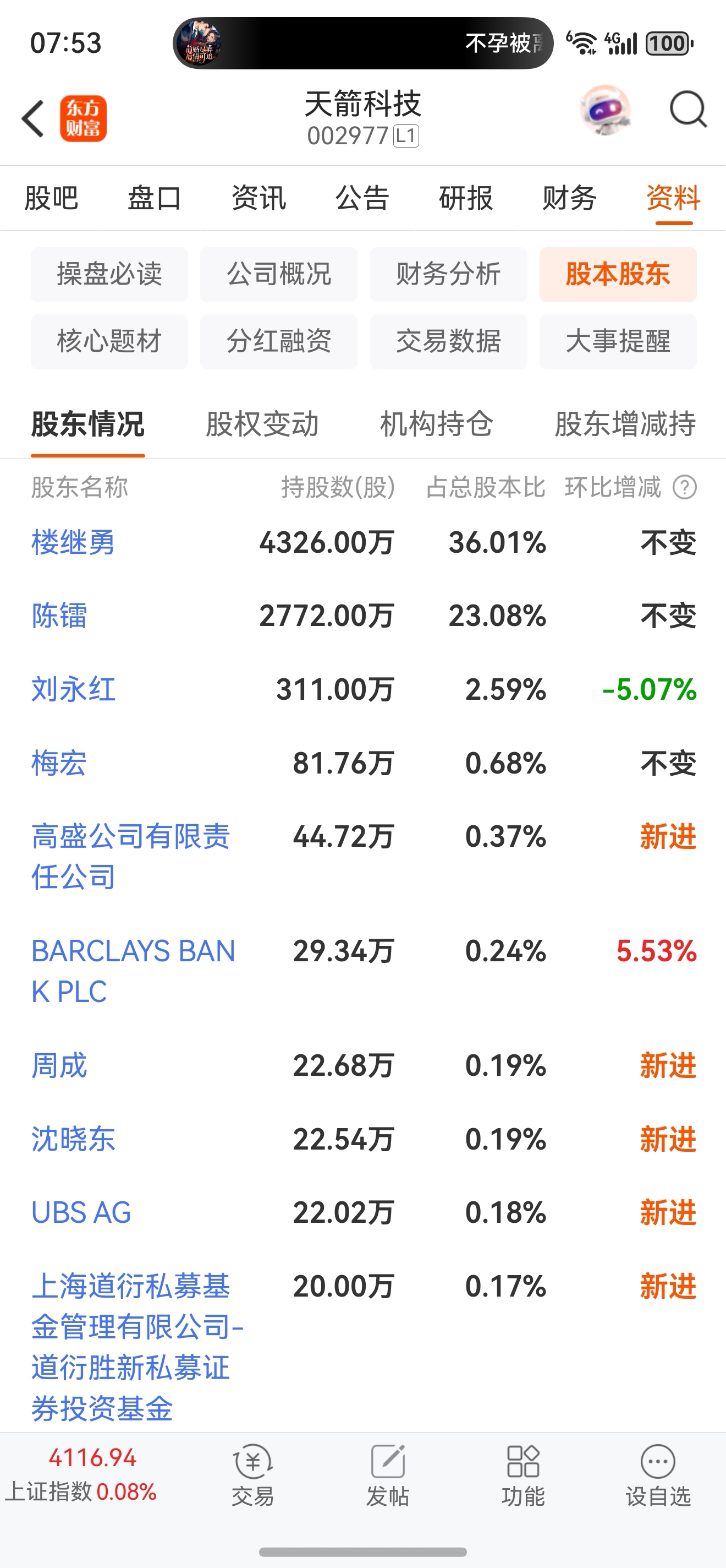 $天箭科技(SZ002977)$