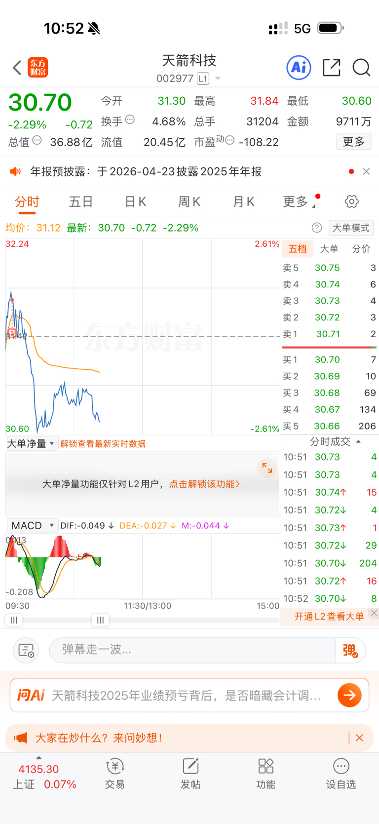 $天箭科技(SZ002977)$ 就这样子成功挂着三顶,一进来就没了四个点