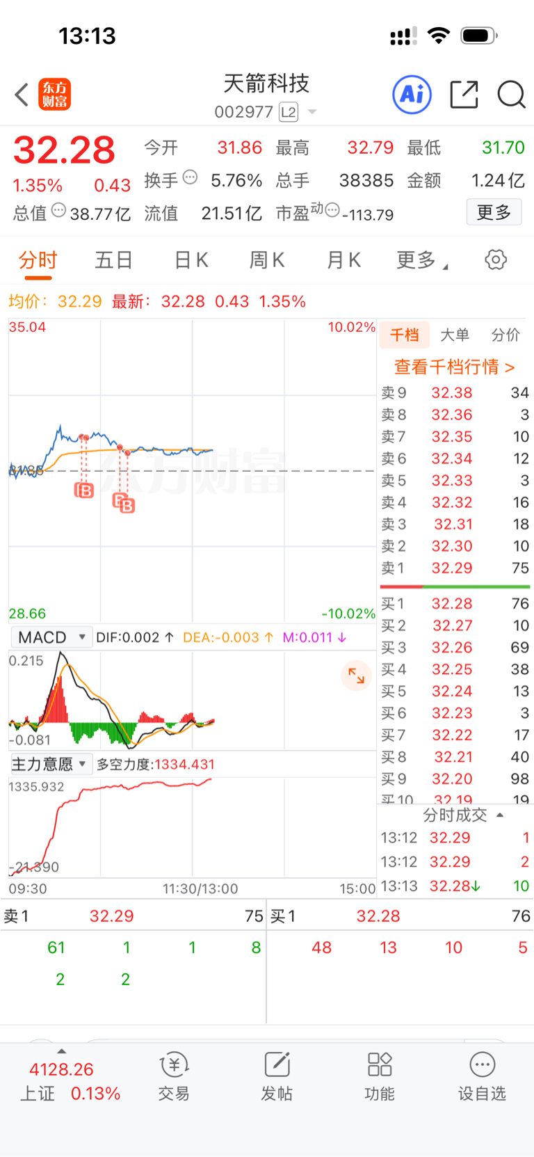 $天箭科技(SZ002977)$ 你们不敢买的票我来接盘,亏钱吗谁不会