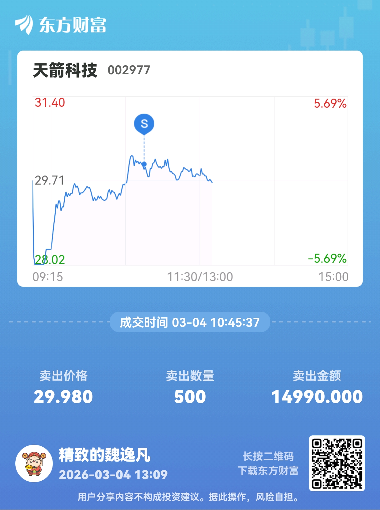 温馨提示: 1.根据《证券法》规定,禁止编造、传播虚假信息或者误导性信息,扰乱证券市场;2.用户在本社区发表的所有资料、言论等仅代表个人观点,与本网站立场无关,不对您构成任何投资建议。用户应基于自己的独立判断,自行决定证券投资并承担相应风险。《东方财富社区管理规定》