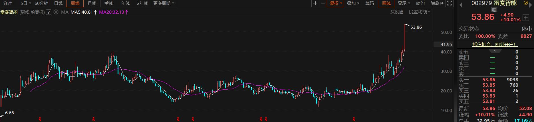 雷赛智能 53.86 加速了