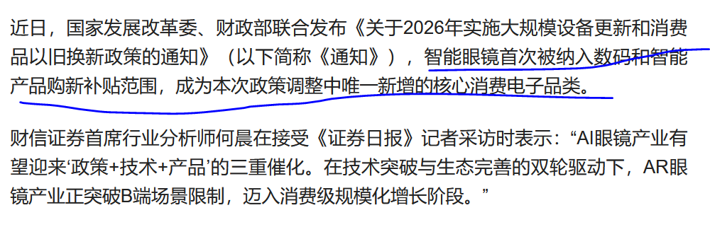 “政策红包”来袭,智能眼镜首次被纳入数码和智能产品购新补贴范围。