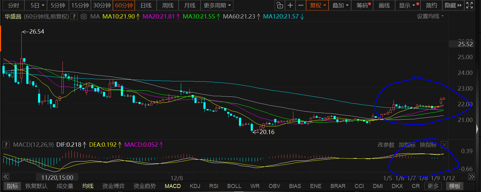 分时级别处于多方形态,看好接着——带动日线突破60均线,MACD上零轴,完美