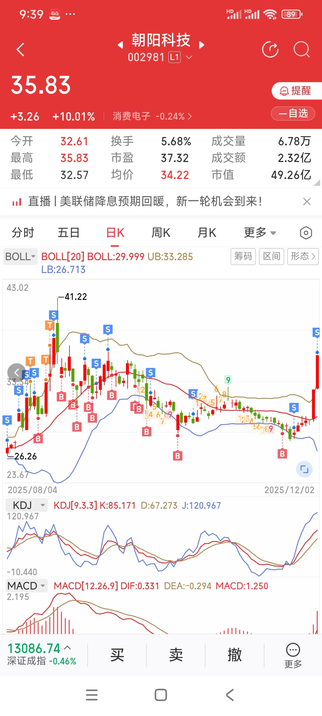 $朝阳科技(SZ002981)$ 本人好久没出现了,前几天缺钱割了点,他就涨了。。