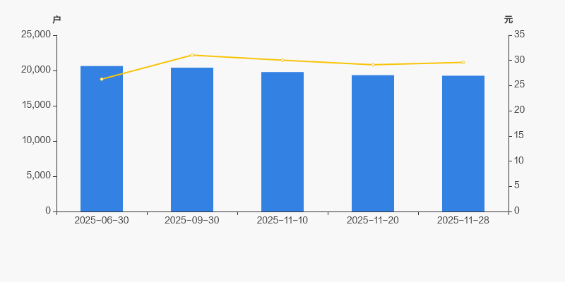 自2025年6月30日以来,公司股东户数连续4期下降,截至目前减幅为6.66%。2025年6月30日至2025年11月28日区间股价上涨12.67%。