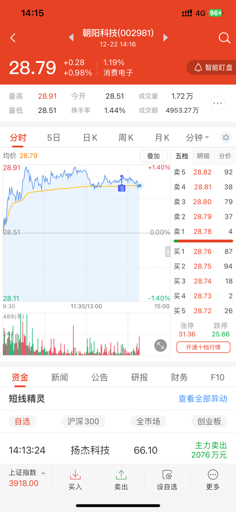 $朝阳科技(SZ002981)$ 幸好跑了,28.85出了。