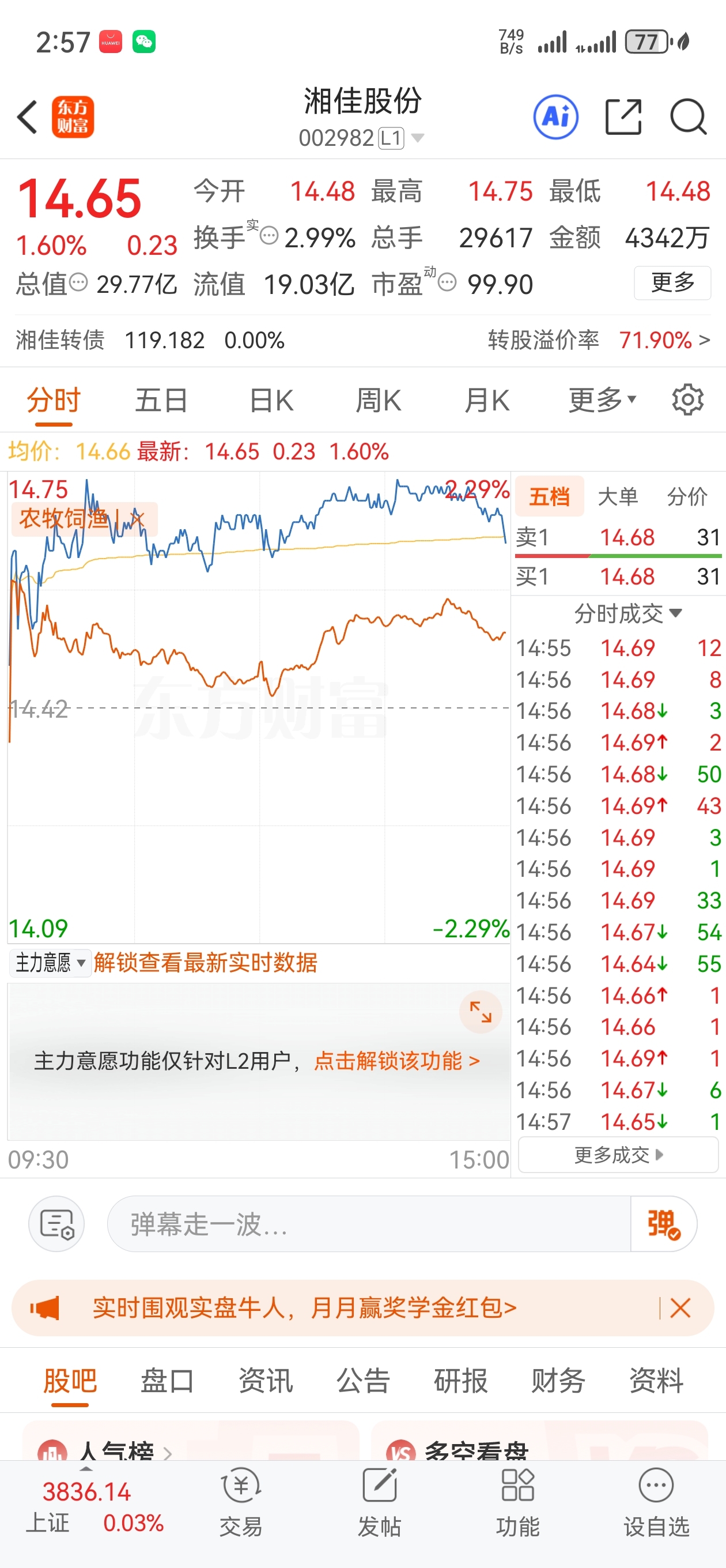 $湘佳股份(SZ002982)$ 看交易情况就知道啥意思了