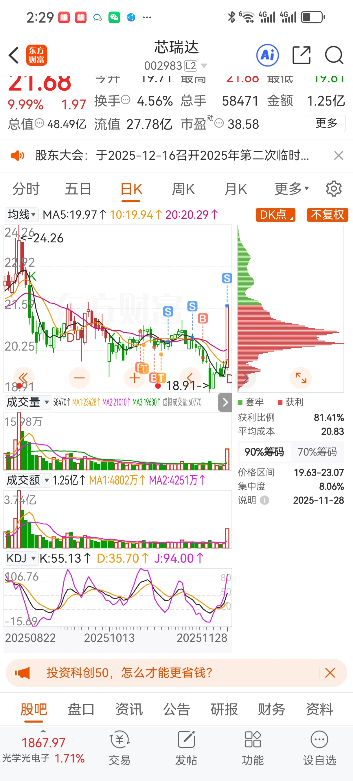 $芯瑞达(SZ002983)$ 持仓10个票唯一一个赚钱的,本来打算回本了就清仓跑路,居然还能赚个几个点