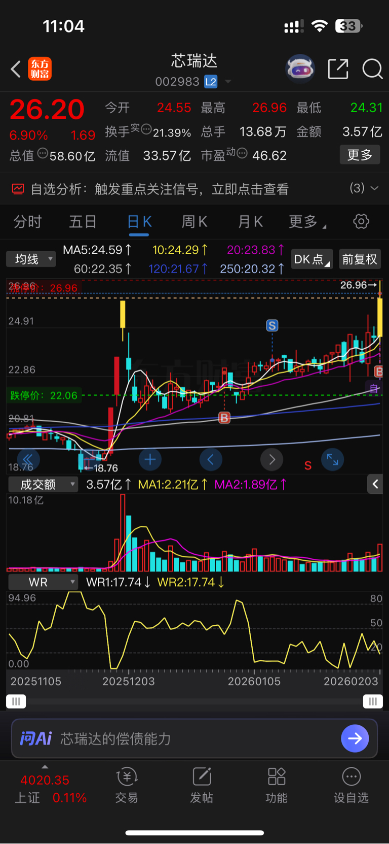 $芯瑞达(SZ002983)$ 这票我买过,没问题的,冲吧