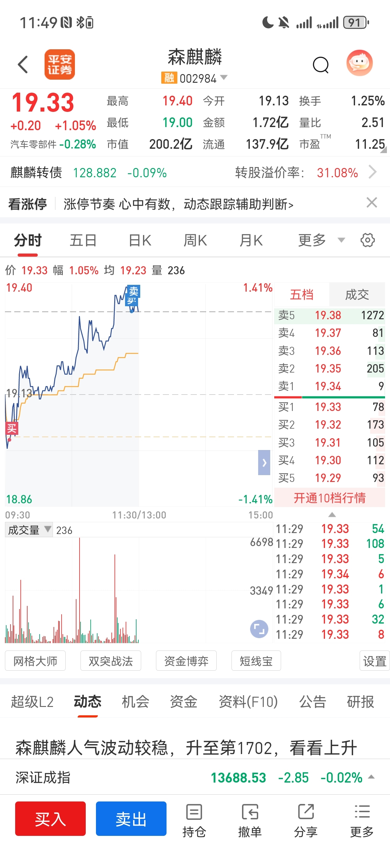 最近底部加的和今天早上加的卖出,对于森麒麟来说今天已经算是大涨了,先保住利润