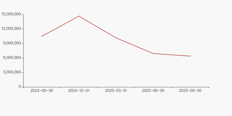 截至2025年9月30日,公司最新总股本为10.36亿股,其中流通股本为7.14亿股。户均持有流通股数量由上期的1.04万股上升至1.11万股,户均流通市值21.36万元。