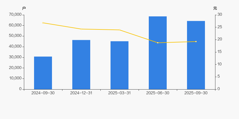 2024年9月30日至今,公司股东户数成倍增长,区间涨幅达108.99%。2024年9月30日至2025年9月30日区间股价下降28.17%。