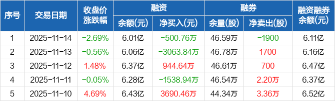森麒麟:融资净偿还500.76万元,融资余额6.01亿元(11-14)