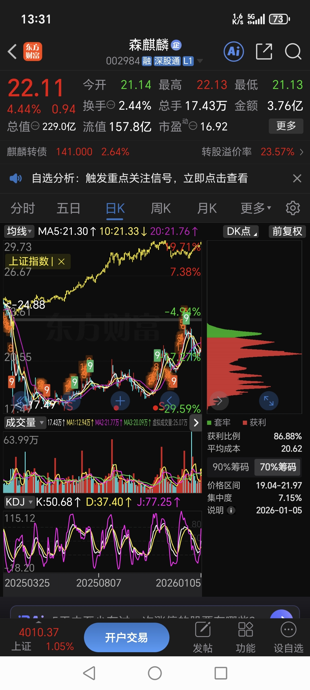 $森麒麟(SZ002984)$ 与上证还差25%左右,加油