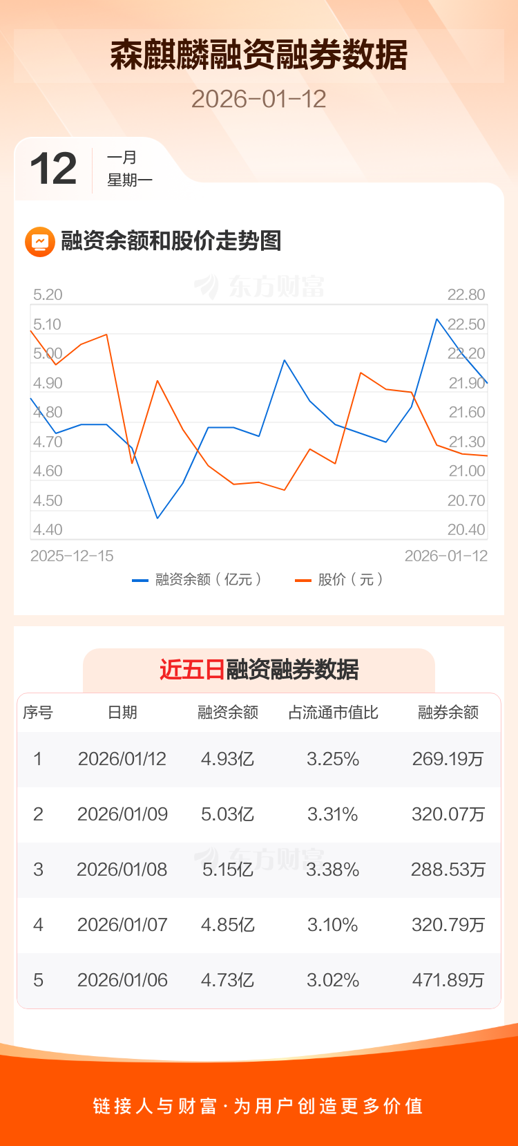 交易所最新数据显示,森麒麟于2026年1月12日获融资买入3180.68万元,融资偿还4107.84万元,当日融资净偿还927.16万元。目前,该股融资余额4.93亿,占流通市值比例为3.25%。
