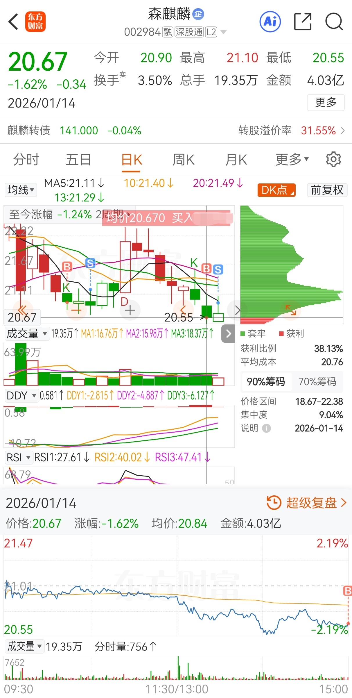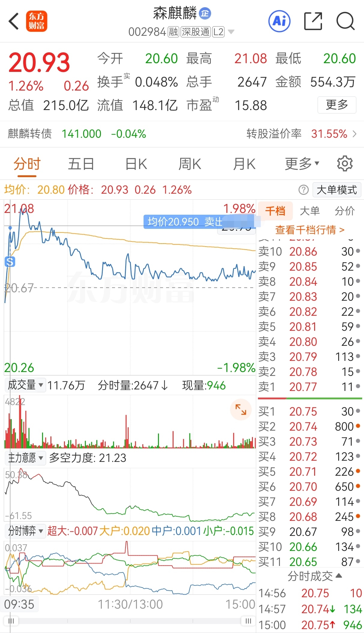 $森麒麟(SZ002984)$ 今买明卖,20.67买,20.95卖,实盘隔夜套利森麒麟,成功收米走人!