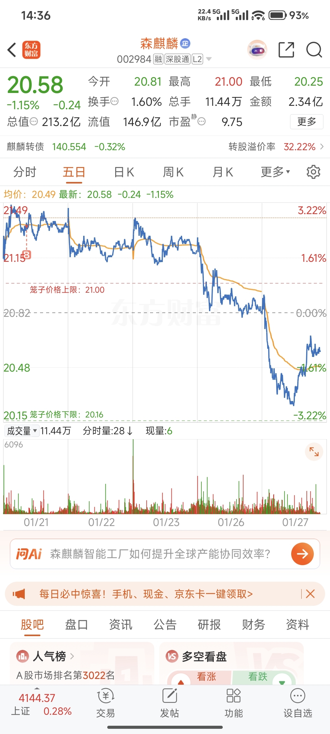 一字连板卖飞了,买了个5连跌停的,卖完就地天板+涨停板,和一个无限跌的森麒麟,我