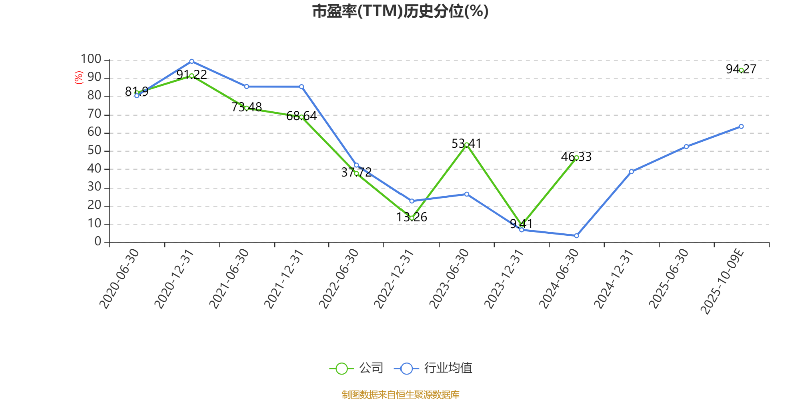 以本次披露业绩预告均值计算,公司近年市盈率(TTM)图如下所示:
