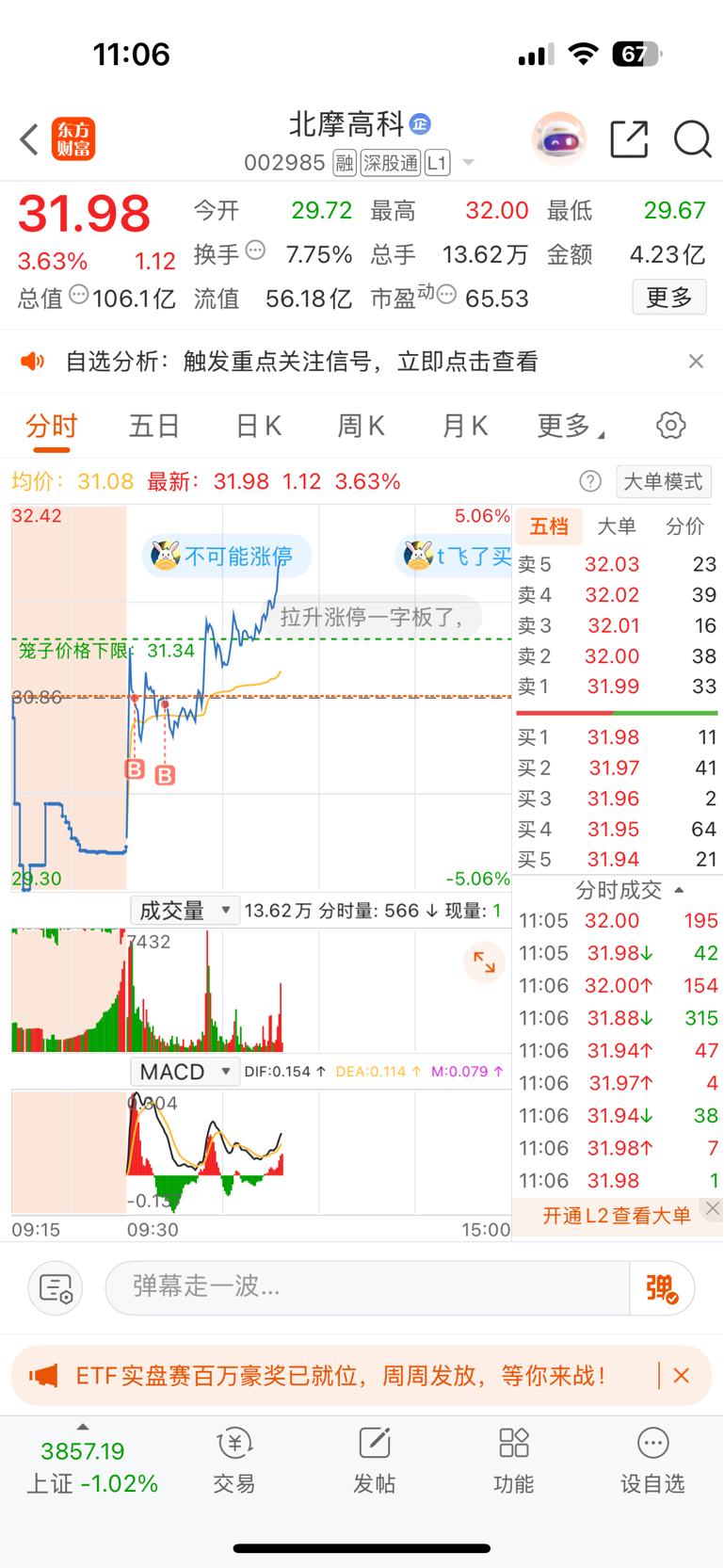 $北摩高科(SZ002985)$ 今天还能红,确实不错了