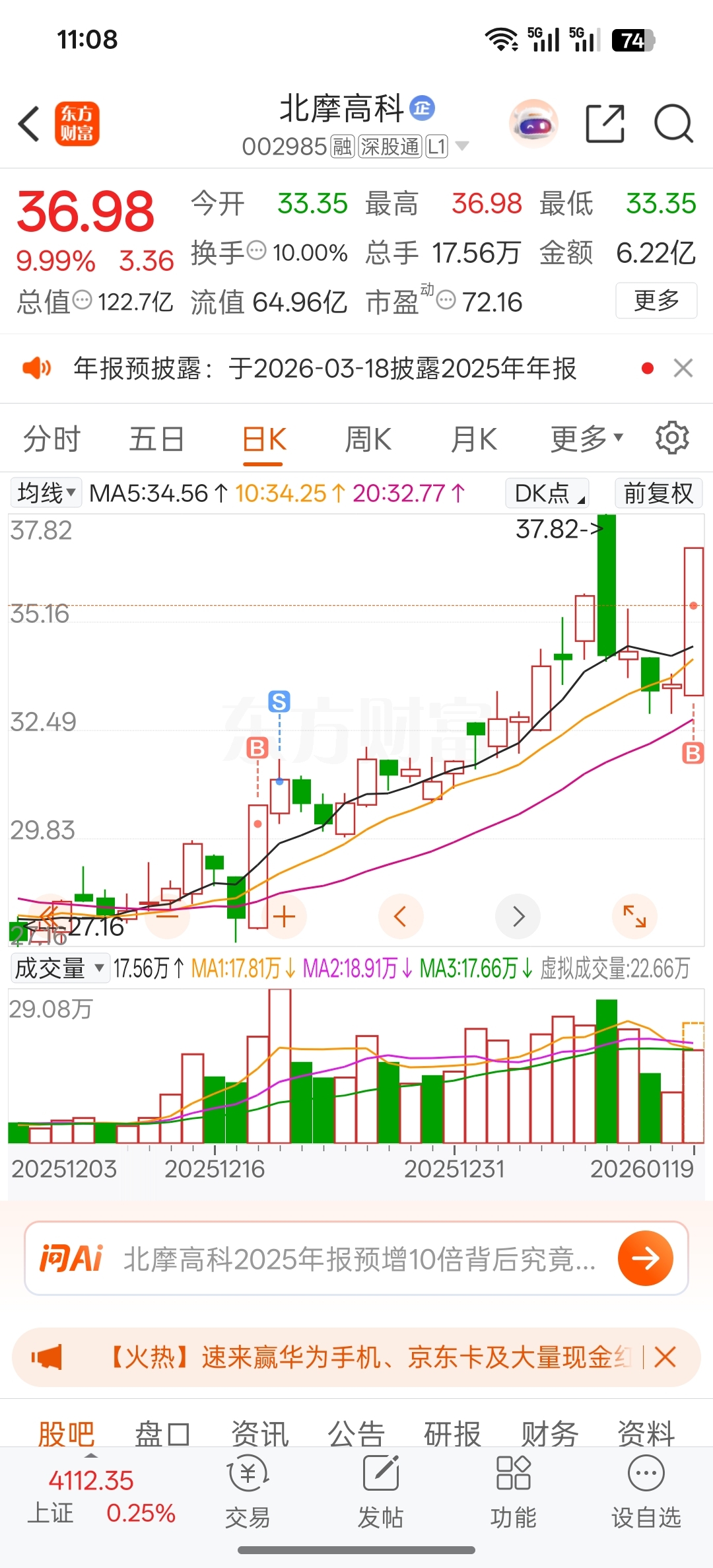 $北摩高科(SZ002985)$ 上了2个涨停板,这次多拿几天看看