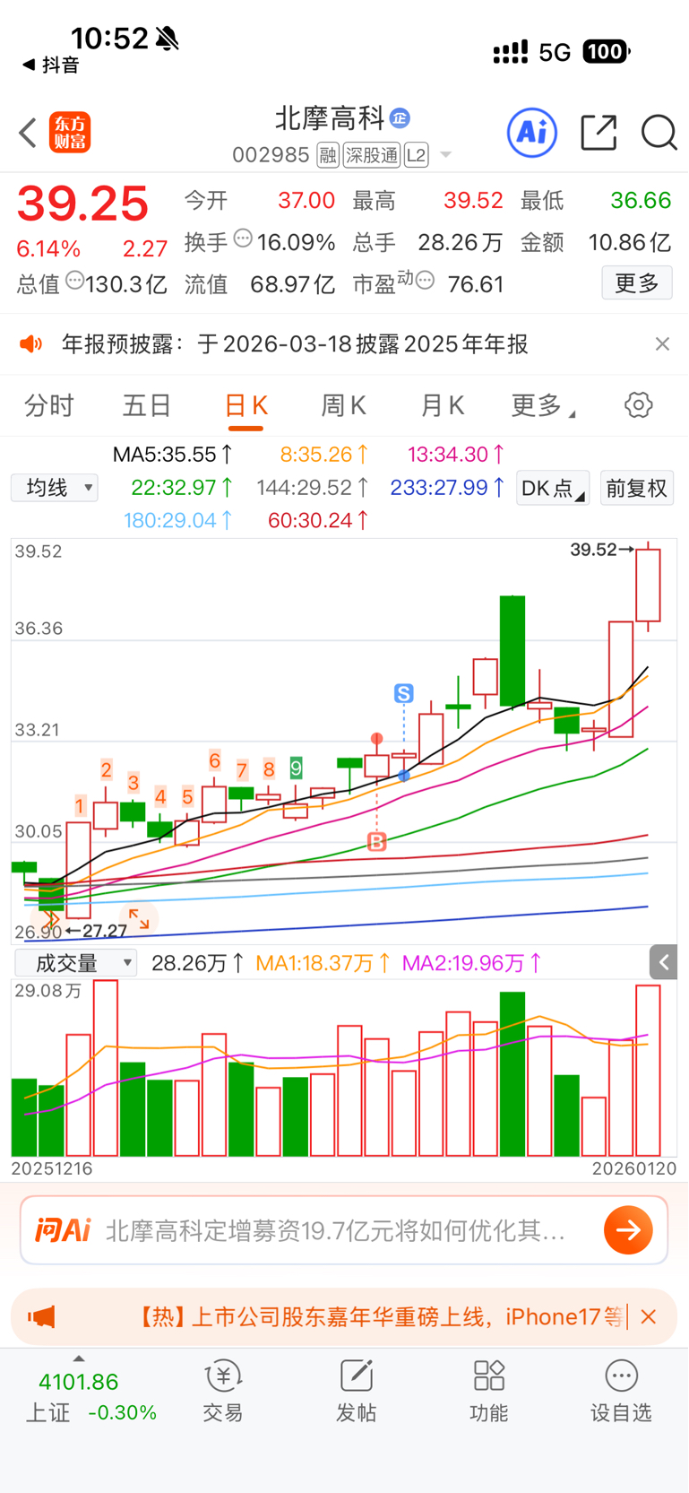 $北摩高科(SZ002985)$ 看好又被外面大涨影响 活该