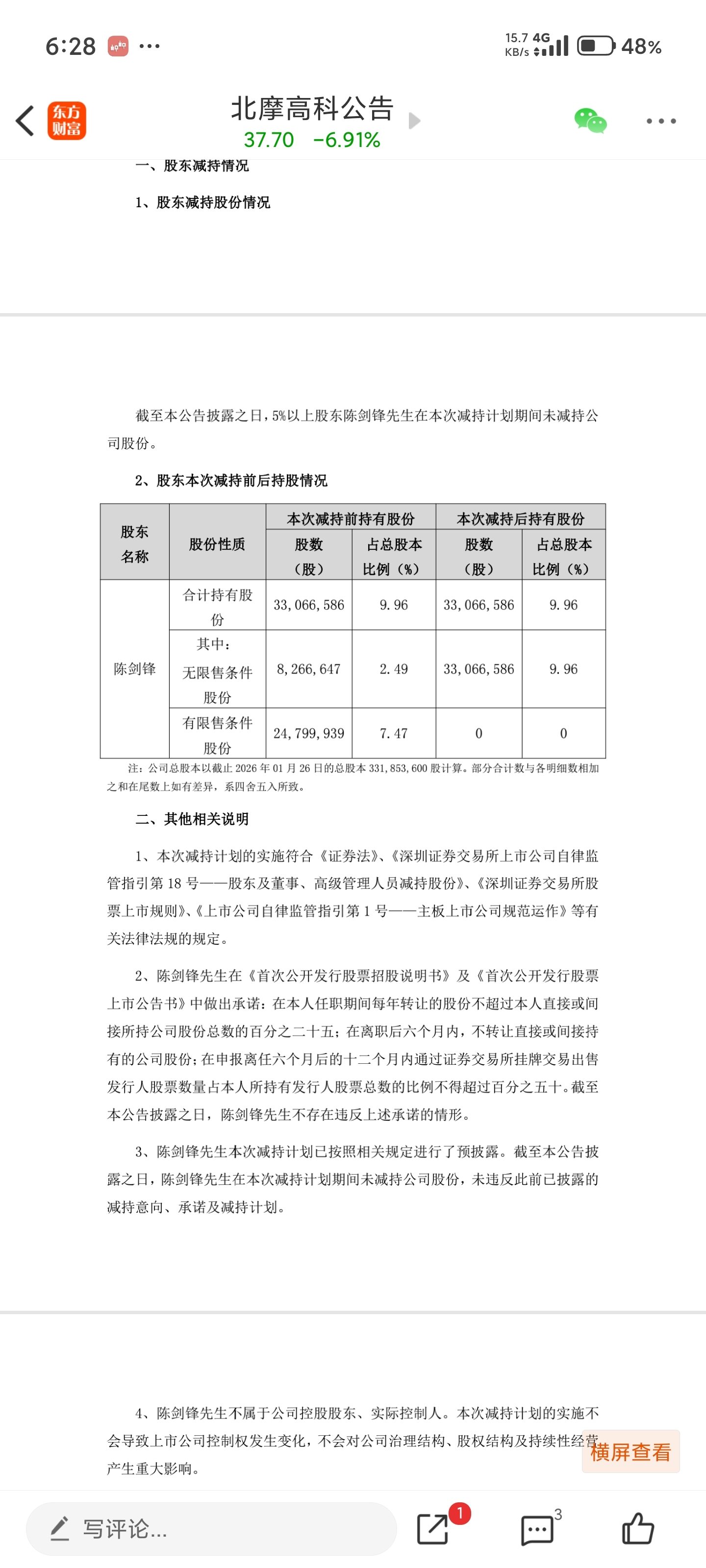 $北摩高科(SZ002985)$ 大股东有格局!一股不卖反而今天是散户互相踩踏,超预期!