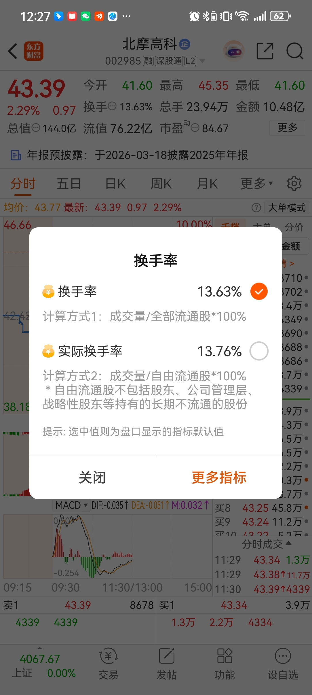$北摩高科(SZ002985)$ 换手一致,没有拉升预期
