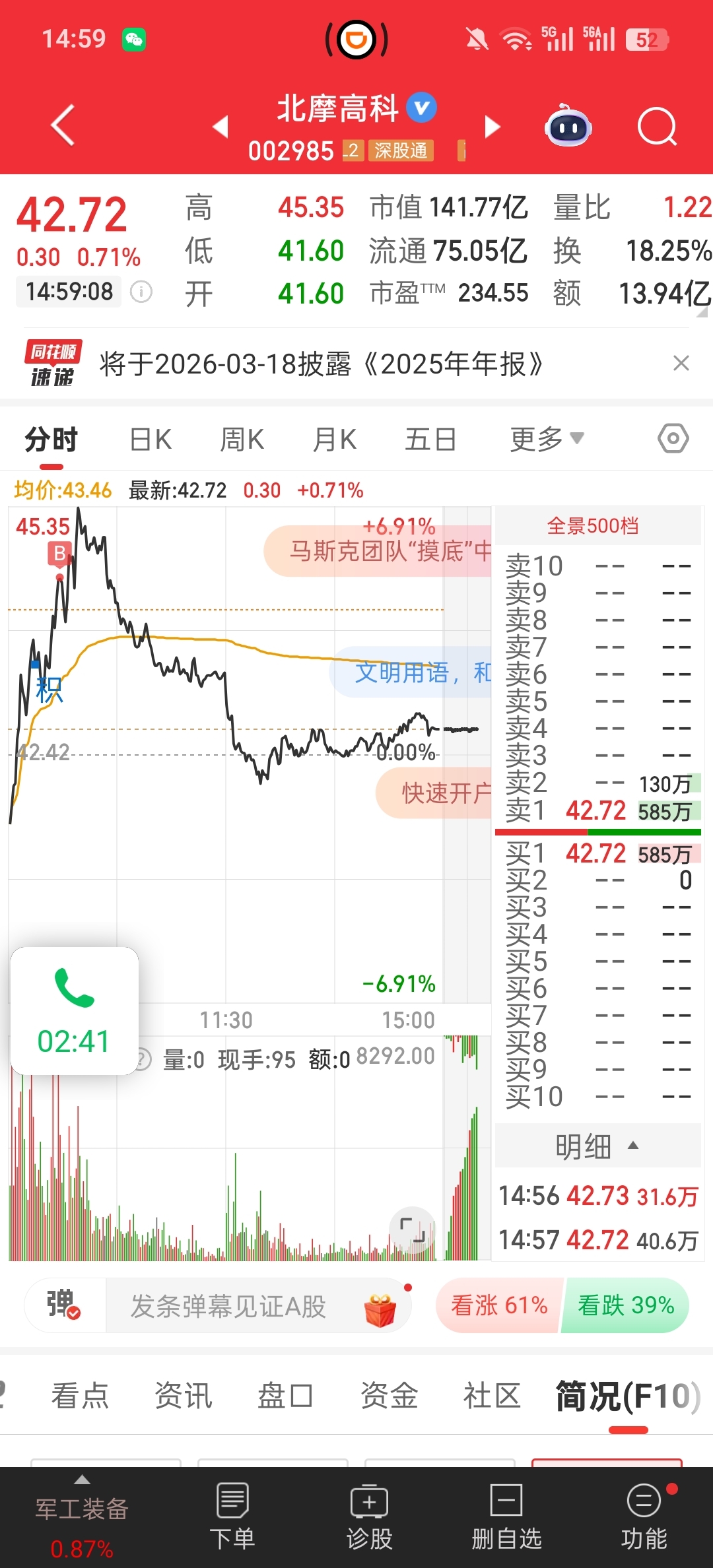 $北摩高科(SZ002985)$ 兄弟们别慌,航天元年必能解套