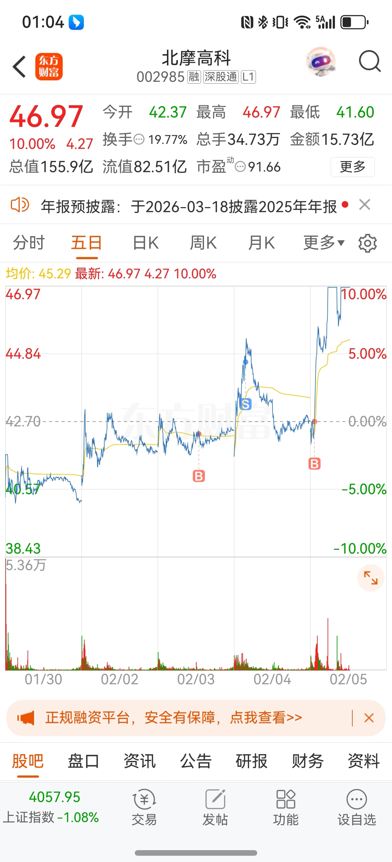 $北摩高科(SZ002985)$ 买卖点不错